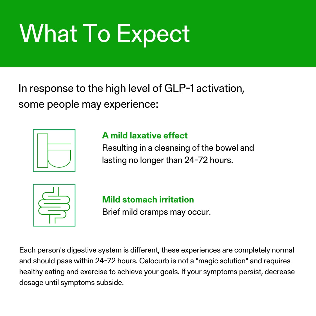 In clinical studies, Calocurb showed a low incidence of side effects when starting on Calocurb, and no ongoing side effects . Mild patient discomfort (e.g., loose stools) can occur in the first 24–72 hours as your body adjusts to the levels of GLP-1 you are now naturally activating. Gradually increasing your dose over a number of days helps minimize any discomfort.