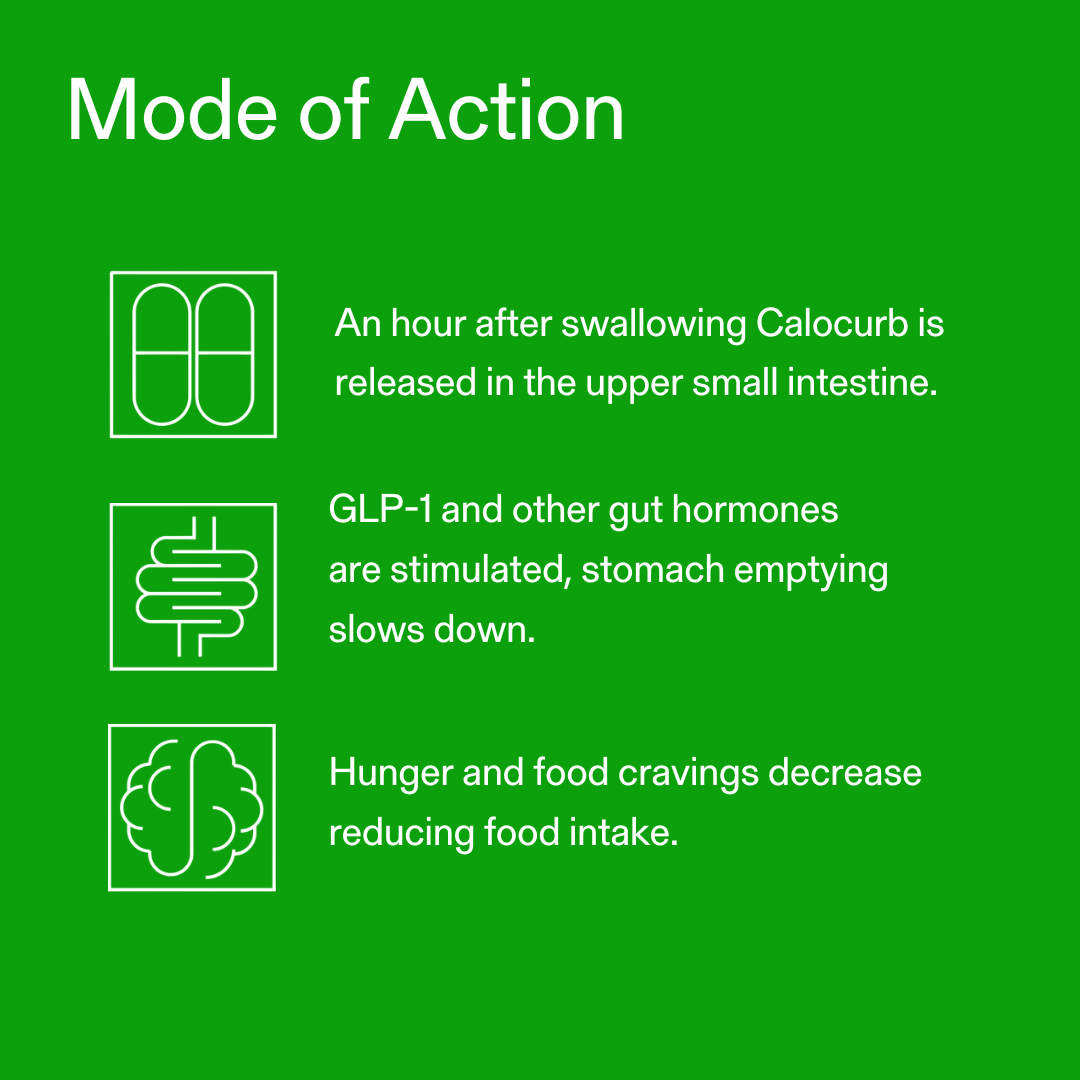 Calocurb is released in just the right spot in the upper intestine, where our active ingredient, Amarasate® activates special sensory cells.