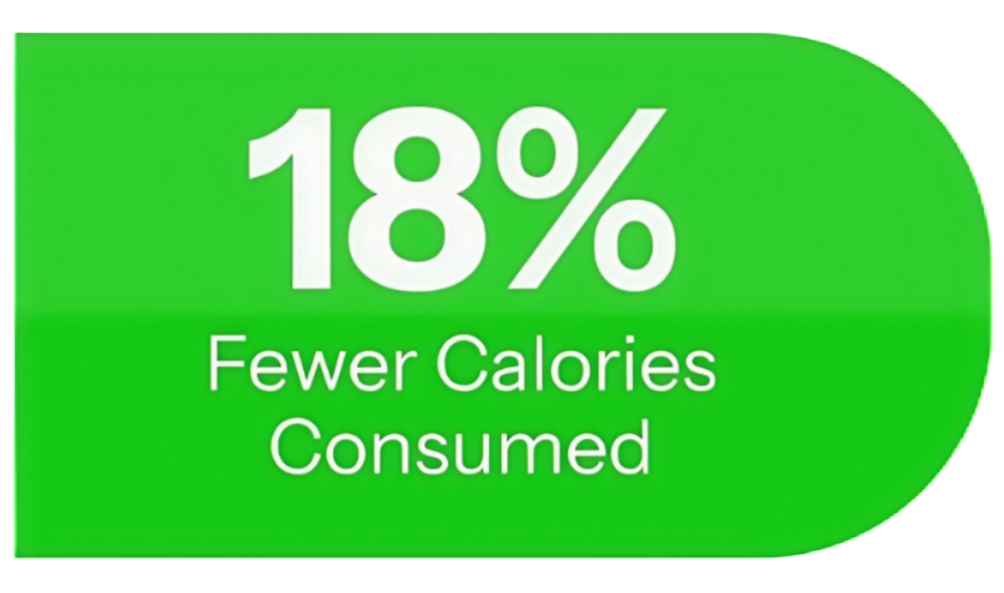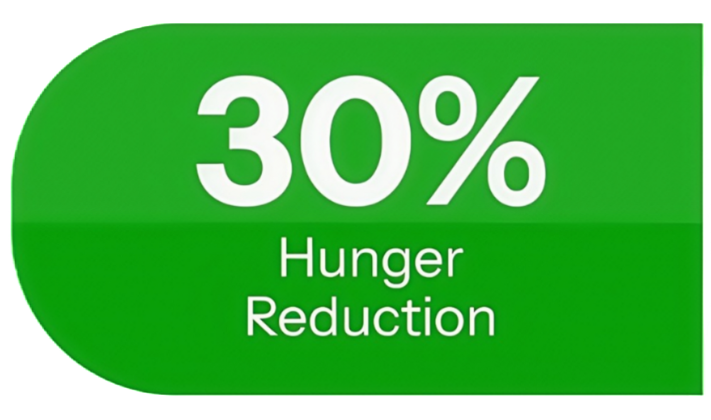 Sensing bitterness, these cells release natural gastric peptides GLP-1, CCK, & PYY at 6x base level. These are the stop eating signals sent from the stomach to the brain. This results in a reduction in feelings of hunger by 30%, cravings by 40%, and calorie intake by an average of 18%, in one hour.